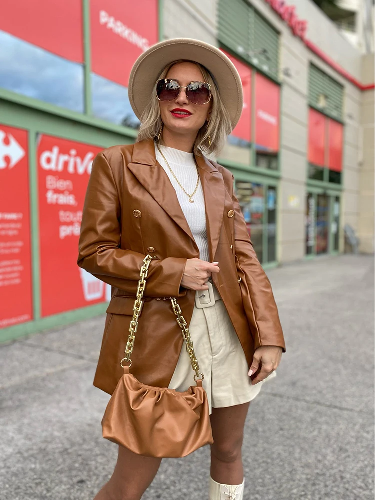 Crafted from premium PU leather, this blazer offers durability and a sleek, modern aesthetic.
